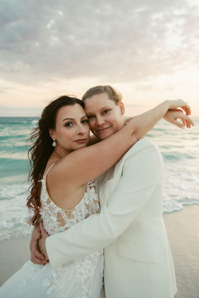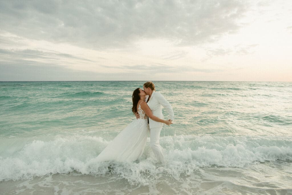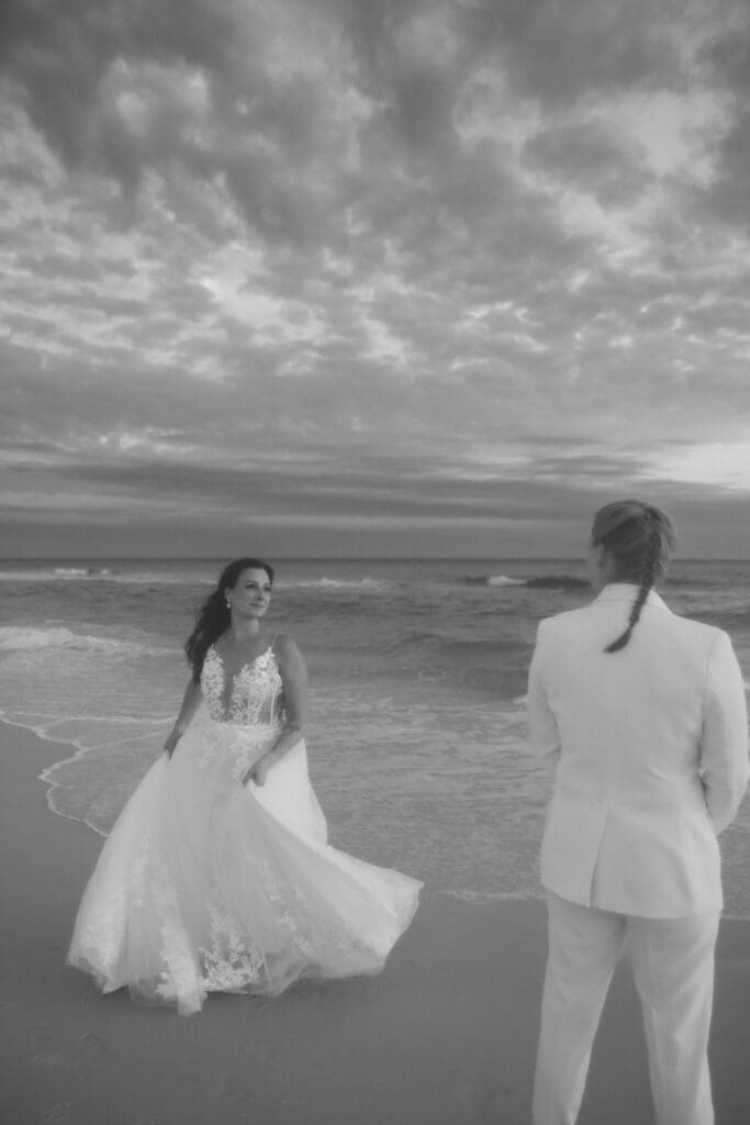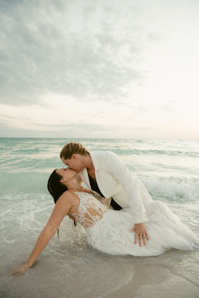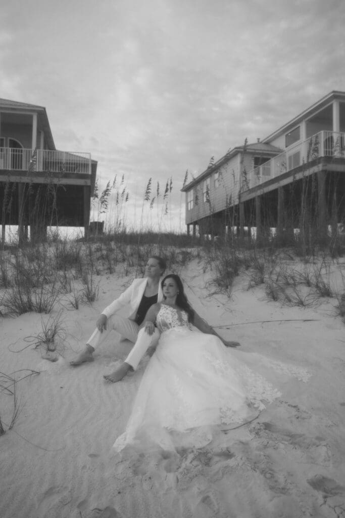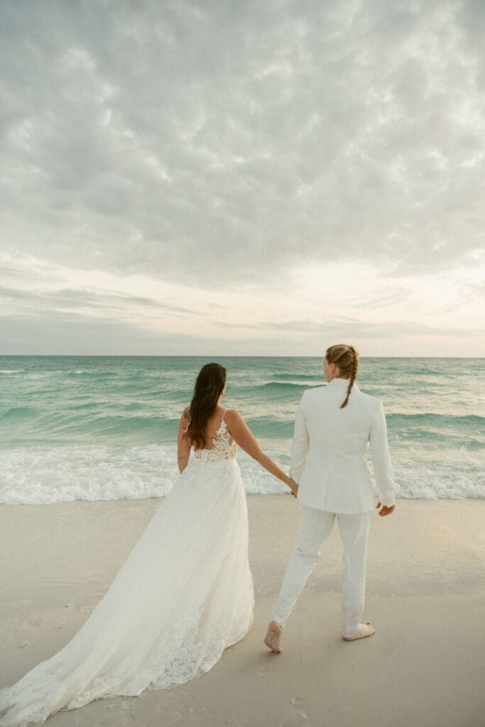 Recently, I photographed an anniversary session for a couple visiting 30A who brought their wedding attire back to the beach. She wore her wedding dress, and her wife wore her suit.